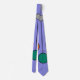 Esta corbata tiene un diseño art deco de líneas negras con círculos en colores retro en la parte superior y abajo.