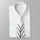 Esta corbata tiene un diseño Art Deco de vidrieras de diamantes y líneas en blanco, negro y turquesa.