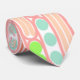 Esta corbata tiene un diseño hecho de ovales largos llenos de círculos, formas de diamante o líneas en rosa, coral, verde y azul.