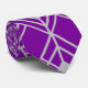 Esta corbata tiene un diseño art deco de formas diamantíferas y líneas en plata en un campo de morado.