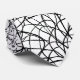 Esta corbata presenta un patrón abstracto de arte de línea negra en un fondo blanco.