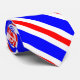 Esta corbata está decorada con un patrón rayado del azul rojo blanco.