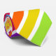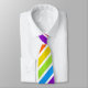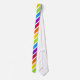Esta corbata tiene rayas diagonales blancas alternando con colores brillantes y arcoiris.