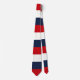 Esta corbata tiene rayas azules rojas blancas diseñadas con fotos de lujo.