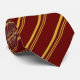 Esta corbata de hombre rojo oscuro tiene un patrón de rayas de oro. Las rayas están en diagonal.