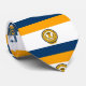 Atado con la bandera de San José, California. Una bandera azul, blanca y naranja con el sello de la ciudad en el centro