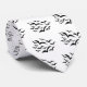Esta corbata de novedad de Halloween está cubierta en una colección de imágenes simples de murciélagos volando juntos en un patrón de nube. Los murciélagos son negros y el color de fondo de la corbata es blanco.