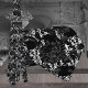 Una dramática corbata de cuello de boda blanco y negro con damasco floral blanco y negro mezclado con florales de color negro y gris. Hace una perfecta corbata de cuello para novio y novio.