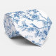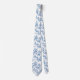 Hermosa ilustración floral azul y blanca y de pájaros para una elegante corbata de hombre.