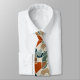 Esta corbata presenta un moderno patrón de blob abstracto en verde azulado, verde oliva, roya y marrón sobre un fondo beige.