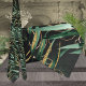 Una elegante invitación a una boda tropical pintada con acuarela pintada con un impresionante lavabo de acuarela negra con hojas de palma verdes pintadas de manera exquisita y acentos dorados brillantes. Una animada caligrafía de guión de swash dorado anuncia los detalles de su boda.