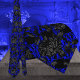 Un dramático empate de cuello azul y negro boda con damasco floral mezclado con florales negras y grises. Hace una perfecta corbata de cuello para novio y novio.