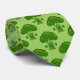Corbata de novedad con un patrón repetido de brócoli verde feliz sobre un fondo verde.