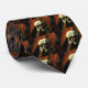 Calavera malvada con zócalos de ojos brillantes y un fondo oscuro salpicado con ramas de naranja, marrón y negro. Feliz Halloween, mortales.