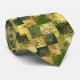 Elegante corbata con un patrón japonés estilo chiyogami de cuadrados dorados y verdes con hojas de bambú.
