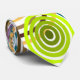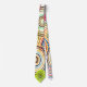 Esta corbata tiene un diseño moderno de mediados de siglo de una serie de círculos dentro del círculo en colores retro.