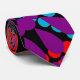 Esta corbata tiene un diseño de Historia Negra de grandes círculos formados de formas de gotas de lluvia y círculos en rojo, amarillo, púrpura, verde y turquesa.