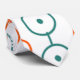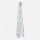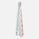 Esta corbata tiene un diseño moderno de mediados de siglo de círculos unidos en tonos retro de verde azulado y naranja en un campo de blanco.