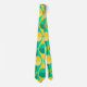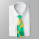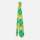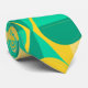 Esta corbata tiene un diseño art deco de círculos amarillos y verdes de dos tonalidades dentro de triángulos amarillos y verdes de dos tonalidades.