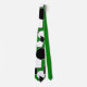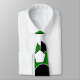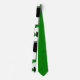 Esta corbata tiene un diseño Bauhaus de triángulos, círculos, rectángulos y pentagones en blanco y negro sobre un campo de verde.