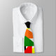 Esta corbata tiene un diseño Bauhaus de un collage de triángulos en rojo, amarillo, naranja, azul y verde.