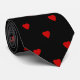 Corazones rojos en un fondo negro. Pequeños corazones rojos brillantes en un modelo de lunar en negro. Un diseño elegante, de moda.