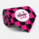 Escuadrones de cuadros de color rosa cálido negro geométrico patrón retro empate cuello. Guay Monograma regalo para hombres. Accesorio de ajuste con diseño de patrón cuadrado geométrico retro. Baldosa de época negra y damero moderno rosa. Personaliza con tu personalizado inicial y nombre.