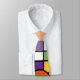 Esta corbata tiene un diseño moderno de mediados de siglo de una rejilla con algunos rectángulos coloreados y círculos encima en colores retro.