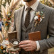 Corbata marrón oscuro rica con un patrón elegante y repetitivo de hojas de roble y bellotas en tonos cálidos dorado-marrón. El diseño tiene un estilo clásico y sofisticado de damasco — detallado pero no abrumador. Emite una vibra cálida y atemporal que funciona muy bien para bodas de otoño, eventos formales o uso diario en el trabajo cuando quieres algo un poco más interesante que una corbata sólida.
