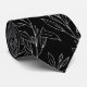 Una corbata de boda moderna blanca y negra con un fondo negro sólido y un contorno blanco de hojas de parra verdes.