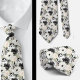 Una corbata con patrón floral en acuarela en blanco y negro presenta un diseño elegante y sofisticado con flores de diversas formas y tamaños, contrastadas con un fondo negro o blanco. Los motivos florales son intrincados, con los pétalos, hojas y tallos representados con líneas limpias y sombreado. El diseño varía desde flores grandes y audaces hasta flores más delicadas y pequeñas, creando una apariencia equilibrada y dinámica.