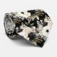 Una corbata con estampado floral en acuarela en negro y blanco presenta un diseño elegante y sofisticado con flores de diversas formas y tamaños, contrastadas con un fondo negro o blanco. Los motivos florales son intrincados, con los pétalos, hojas y tallos representados con líneas limpias y sombreado. El diseño varía desde flores grandes y audaces hasta flores más delicadas y pequeñas, creando una apariencia equilibrada y dinámica.