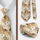 Una corbata floral de marfil dorado, beige y blanco combina tonos cálidos y elegantes con intrincados patrones de flores, creando un accesorio sofisticado y refinado. El color dorado añade un toque de lujo, mientras que el beige proporciona un equilibrio neutro, y el marfil blanco ofrece un contraste suave y cremoso. El diseño floral es típicamente delicado, con sutiles flores y enredaderas que añaden textura y profundidad a la corbata. Esta corbata es ideal para eventos formales, bodas o reuniones de alta categoría, donde complementa tanto trajes de color oscuro como claro, añadiendo un toque atemporal y elegante al atuendo.