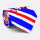 Esta corbata está decorada con un patrón rayado de rojo blanco y las letras "USA".