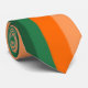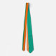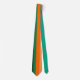 Esta corbata tiene un diseño Bauhaus de rayas en tonos naranjas y verde azulados.