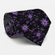 Esta corbata de vestir para hombre se muestra en una estampa floral negra y morada.