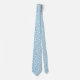 Esta corbata de vestir para hombres se muestra en un diseño de niebla azul y lunares blancos.