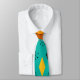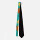 Esta corbata tiene un diseño atómico moderno de diamantes de mediados de siglo, y estallidos en un campo de turquesa.