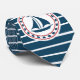 Diseño náutico con decoración de velero en forma redonda sobre fondo de rayas azules y blancas