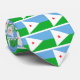 Bandera de Djibouti. La bandera nacional de Djibouti tiene dos bandas horizontales iguales de azul (superior) y verde, con un triángulo isósceles blancos basado en el lado de la pezuña con una estrella roja de cinco puntas (que representa las zonas en las que viven los somalíes en la región) en el centro. Estas cinco zonas son la Somalilandia británica y la Somalilandia italiana (Somalia), Somalilandia francesa (Djibouti), Ogaden y el distrito fronterizo septentrional. Los colores utilizados se pueden ver para simbolizar la tierra (verde), el mar y el cielo (azul) y la paz (blanca), con la estrella roja representando la unidad. Fue izada el día de la independencia de Djibouti, el 27 de junio de 1977. Hay una estrella roja de cinco puntas en el triángulo blanco de Djibouti.