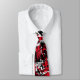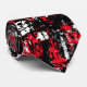 Esta corbata roja, negra y blanca en el cuello muestra un diseño gráfico de arte emo abstracto de estilo graffiti.