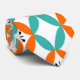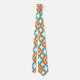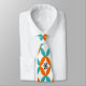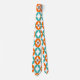 Esta corbata tiene un diseño de círculos y estrellas en verde azulado y naranja con estallidos en algunos de ellos.