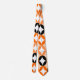 Esta corbata tiene un diseño de círculos y estrellas en negro y naranja. Ideal para la temporada de Halloween.