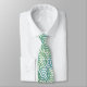 Esta corbata tiene un diseño Boho de espirales superpuestas en azul y verde sobre un campo de blanco.