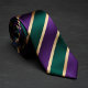 Esta corbata llamativa presenta franjas diagonales nítidas en un vibrante púrpura, un verde esmeralda profundo y delgadas líneas doradas brillantes. La audaz combinación de colores crea un look confiado, lujoso y moderno que destaca de la mejor manera. Perfecta para bodas, eventos formales, colores de fraternidad o escuela, o para agregar personalidad a tu atuendo de negocios. El rico púrpura y verde con acentos dorados se combina hermosamente con camisas y trajes blancos, negros, azules marinos o grises. Ya seas el novio, un padrino o simplemente un hombre que ama las corbatas clásicas a rayas con un toque fresco y enérgico, esta corbata a rayas púrpura, verde y dorada aporta estilo, energía y elegancia sofisticada.