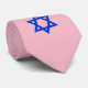 La Estrella de David, o Magen David en hebreo, destaca en esta corbata rosa. Puede cambiar fácilmente el color de fondo. Aunque ha sido utilizada en la historia antigua por varios pueblos, la Estrella es reconocida hoy como el símbolo del pueblo judío y el sionismo, apareciendo en la bandera del Estado moderno de Israel. Se compone de dos triángulos equiláteros y usualmente está en un color azul real. El magnate israelí Magen David Adom, asociado israelí de la Cruz Roja Internacional, usa como símbolo una Estrella roja de David.
