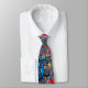 Pintura surrealista colorida. Tres extranjeros. Platillos volantes en el cielo