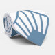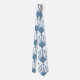 Esta corbata tiene un diseño art deco de diamantes polvorientos azules con líneas diagonales y diamantes de color azul oscuro sobre un campo de blanco.