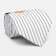 Este diseño de corbata muestra un gato negro de Halloween en una etiqueta naranja y negra con el texto 'Halloween feliz' en blanco. El fondo es un estrecho patrón rayado en blanco y negro. Personaliza con tu nombre u otro texto. Buscar ID686 para ver otros productos con esto
