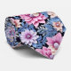 Una corbata de mens colorida diseñada con flores 3D moradas, rosas y peach con hojas azules para el traje formal o de negocios